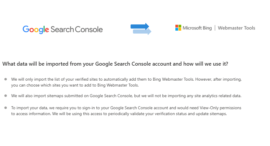 Tip: If you already use Google Search Console, Bing lets you import your site data. You can do this directly from there. More on that in Step 4.