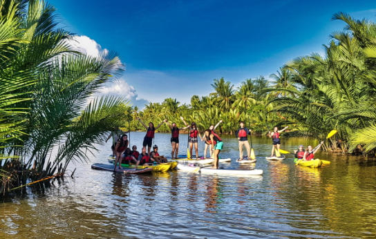 Kampot Riverside is a fantastic place for visitors who enjoy both relaxation and light adventure. The river is surrounded by scenic mountain views, including glimpses of Bokor National Park in the distance. Popular activities include kayaking and stand-up paddleboarding. Taking a sunset boat cruise offers a close look at the river’s beauty.