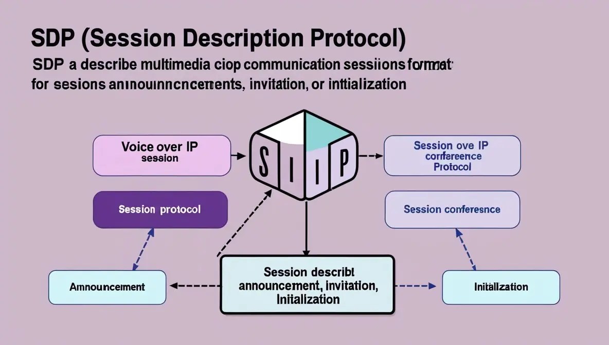 SDP (Session Description Protocol) is a format used to describe multimedia communication sessions. It is used for session announcement, invitation, or initialization. It is primarily used in Voice over IP (VoIP), video conferencing, and other multimedia applications. SDP is not a transport protocol. Instead, it works with protocols like SIP (Session Initiation Protocol) to establish and manage communication sessions.