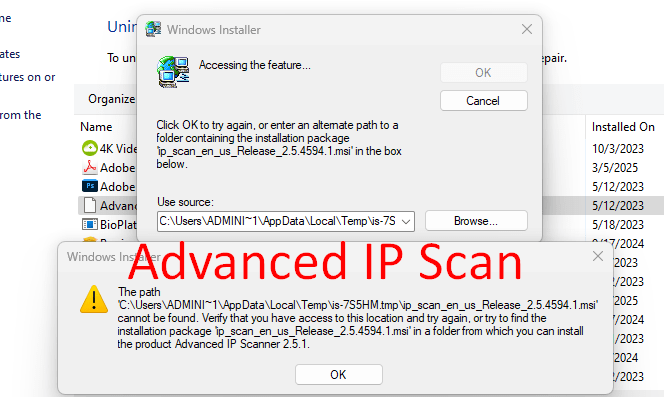 Cannot uninstall Advanced IP Scanner from the Control Panel?